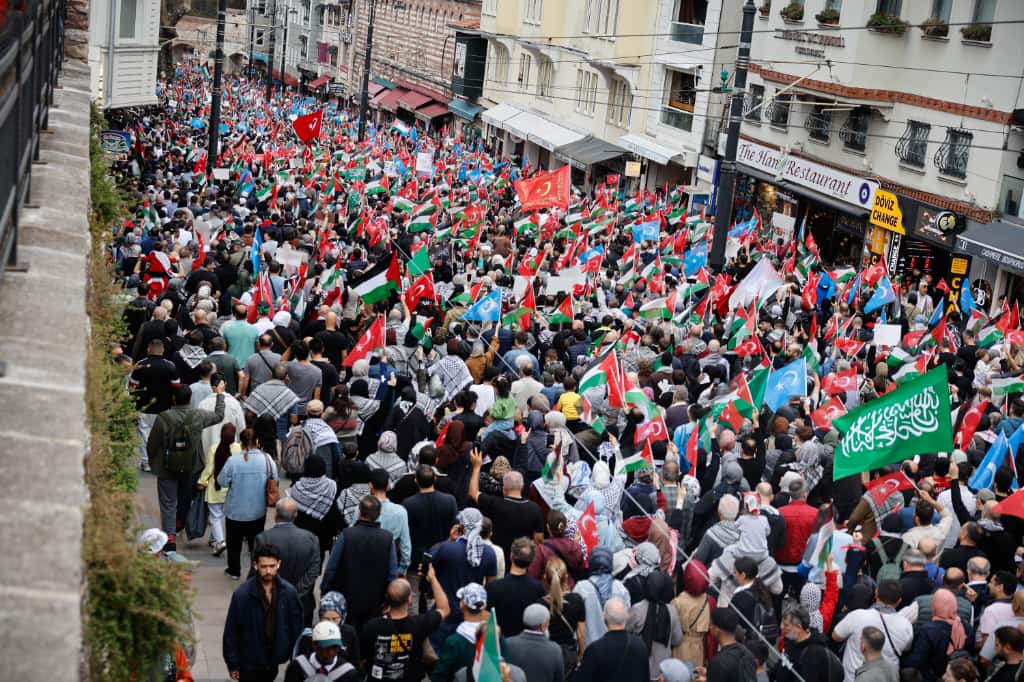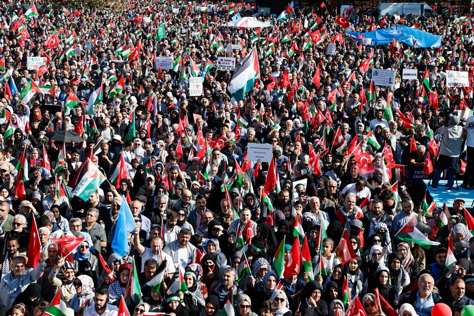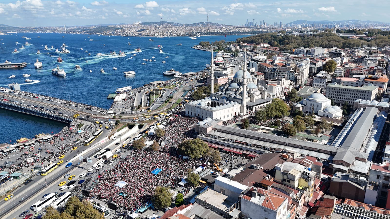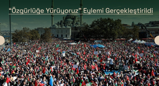 Filistin’e Destek Platformu öncülüğünde bir araya gelen sivil toplum kuruluşları, Aksa Tufanı’nın ikinci yıldönümünde “Özgürlüğe Yürüyoruz” sloganıyla yürüyüş ve miting düzenledi. Ayasofya Camii’nden başlayan yürüyüş, Eminönü Meydanı’nda gerçekleştirilen mitingle sona erdi. Yüz binlerce Filistin sevdalısının katıldığı programa, İnsan ve Medeniyet Hareketi de paydaş kurum olarak destek verdi.