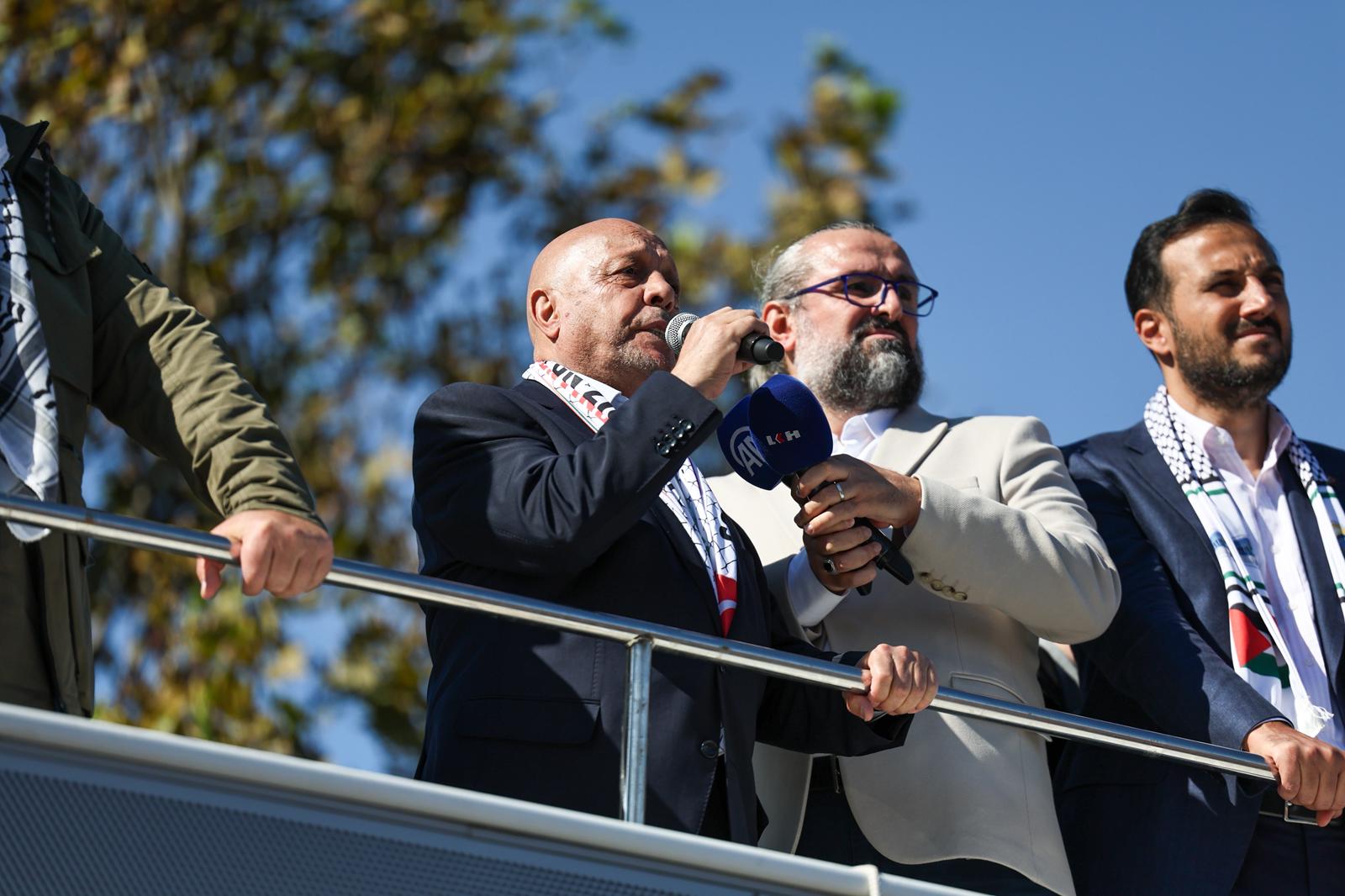 Mitingde konuşan Gazzeli aktivist Dr. Enver Atallah, “Bu savaş Hamas ile İsrail arasında değil; hak ile batıl arasındadır. Biz Mescid-i Aksa’yı, Gazze’yi, Filistin’i değil; ümmetin onurunu savunuyoruz. Gazze inananları bekliyor, Gazze sizi bekliyor.” diyerek katılımcılara teşekkür etti.