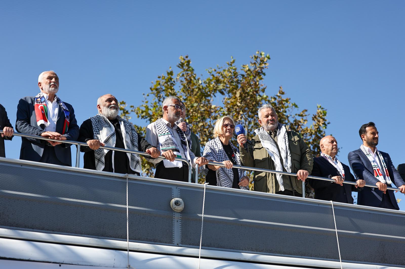 Kur’ân-ı Kerîm tilavetiyle başlayan programa; Filistin’e Destek Platformu Dönem Başkanı Mehmet Güney, HAK-İŞ Genel Başkanı Mahmut Arslan, AK Parti İstanbul İl Başkanı Abdullah Özdemir, İHH Genel Başkanı Bülent Yıldırım, İstanbul 2 No’lu Baro Başkanı Yasin Şamlı, Özgürlük Filosu Koalisyonu Sözcüsü Ann Wright ve Gazzeli aktivist Dr. Enver Atallah katıldı.