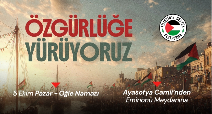 Aksa Tufanı’nın yıl dönümünde Filistin’in özgürlüğü için Ayasofya Camii’nden Eminönü Meydanına yürüyoruz.