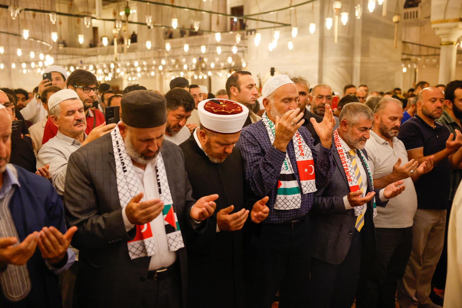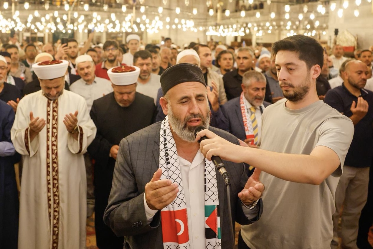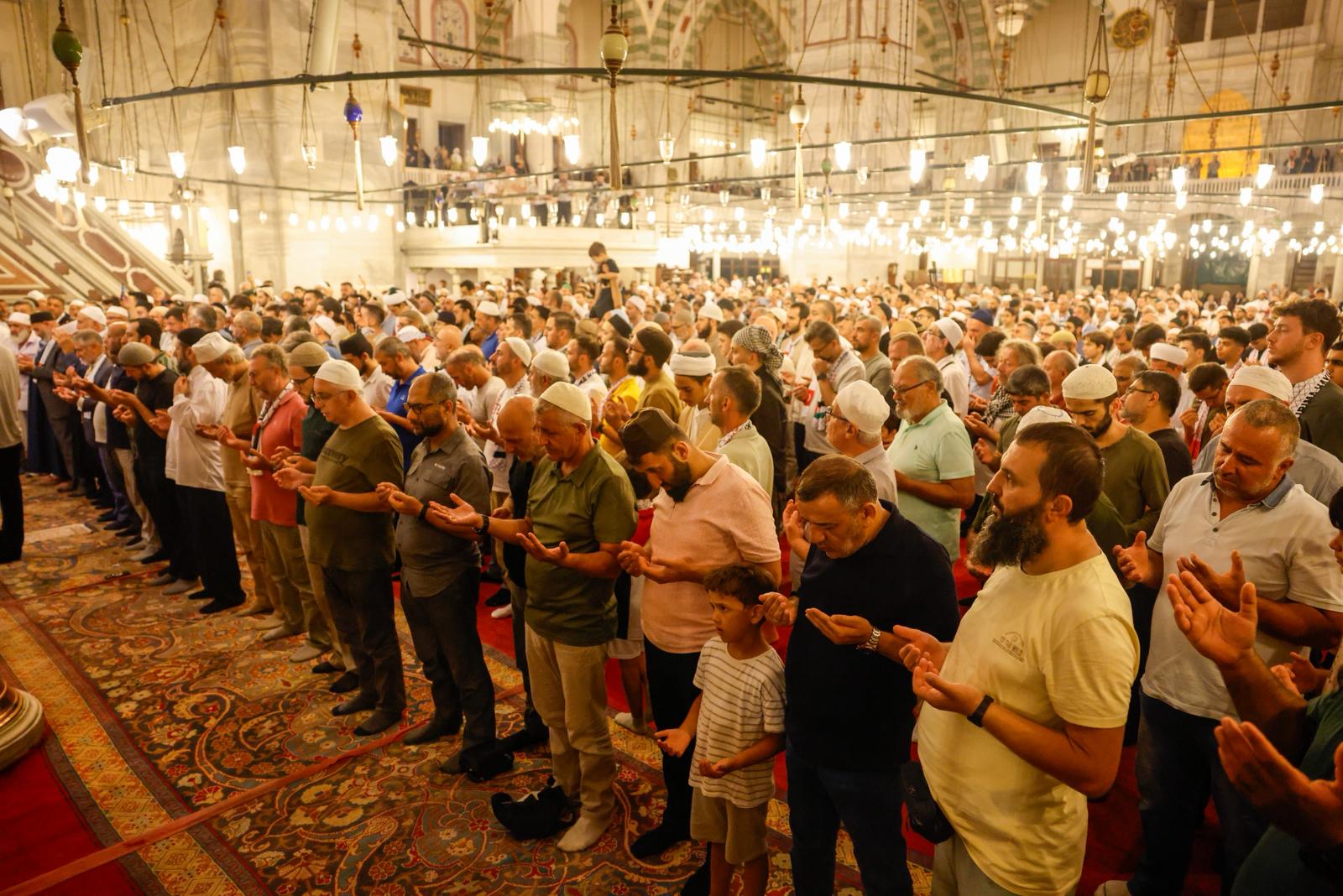 Filistin’de iki yıldır devam eden soykırım, “Gazze için ellerimizi semaya kaldırıyoruz” programında protesto edildi. Yatsı namazının ardından Fatih Camii’nde buluşan binlerce kişi, ellerini semaya açarak Filistin’in özgürlüğü için yapılan dualara hep birlikte “amin” dedi.