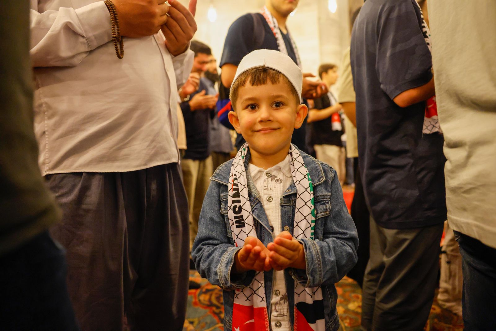 Soykırımın ve açlığın pençesindeki Gazze için düzenlenen programa, “Gazze için ellerimizi semaya kaldırıyoruz! Seccadeni al gel” çağrısıyla özellikle çocukların ve gençlerin yoğun ilgisi dikkat çekti.