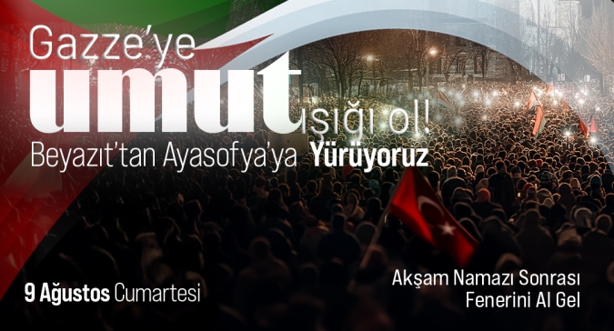 Soykırımın ve açlığın pençesindeki Gazze için Beyazıt’tan Ayasofya’ya yürüyoruz. Gazze’ye umut ışığı olmak için: Fenerini al gel!