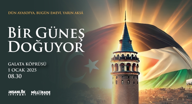 İşgalci İsrail’in Gazze’de gerçekleştirdiği insanlık suçları ve katliamlara karşı sesimizi yükseltmek, mazlum Filistin halkının mücadelesine destek olmak ve adaleti haykırmak için 1 Ocak’ta Galata Köprüsü’nde buluşuyoruz.