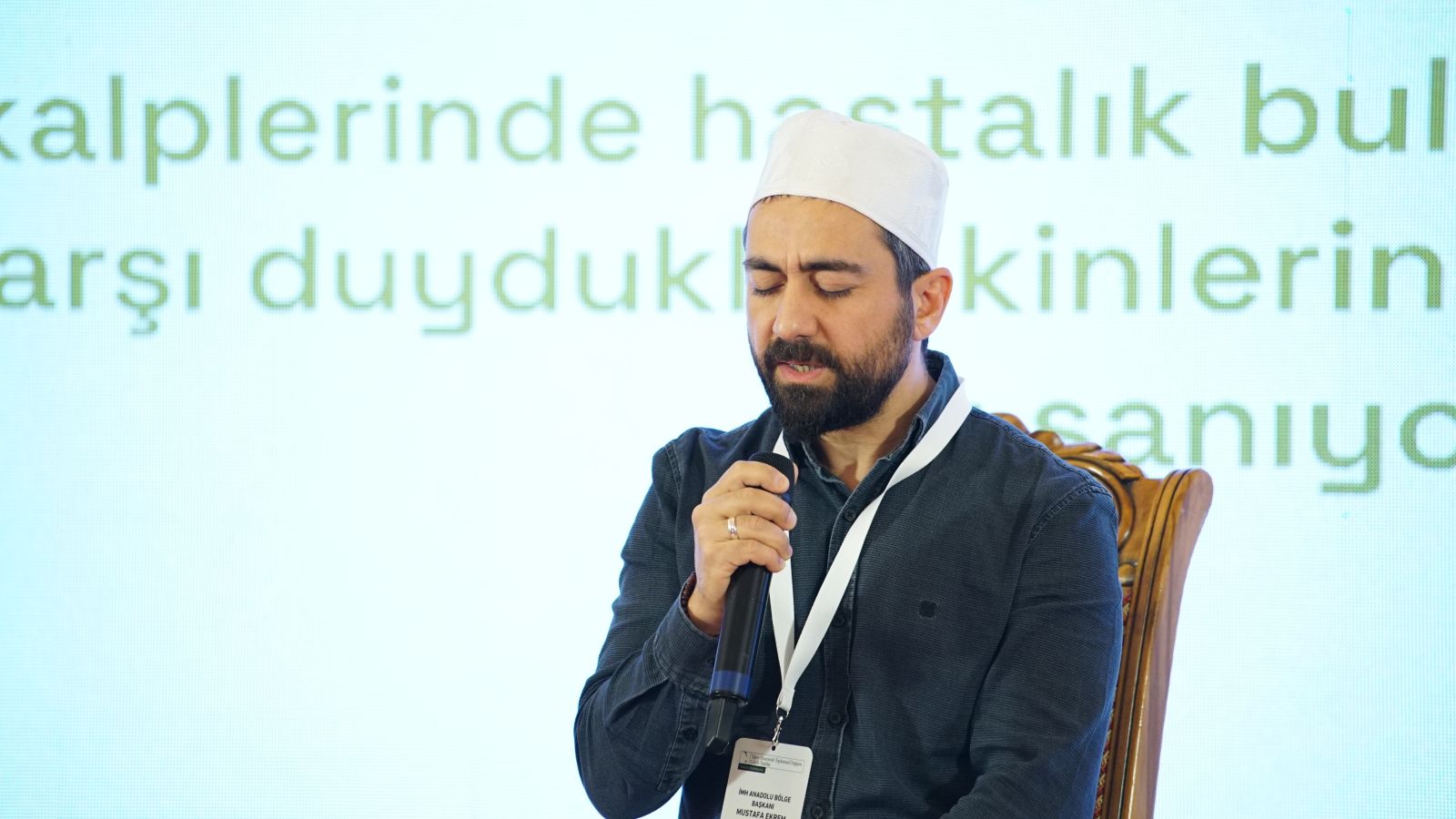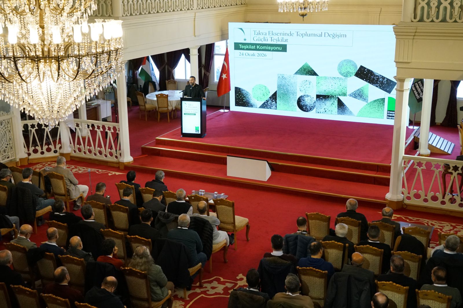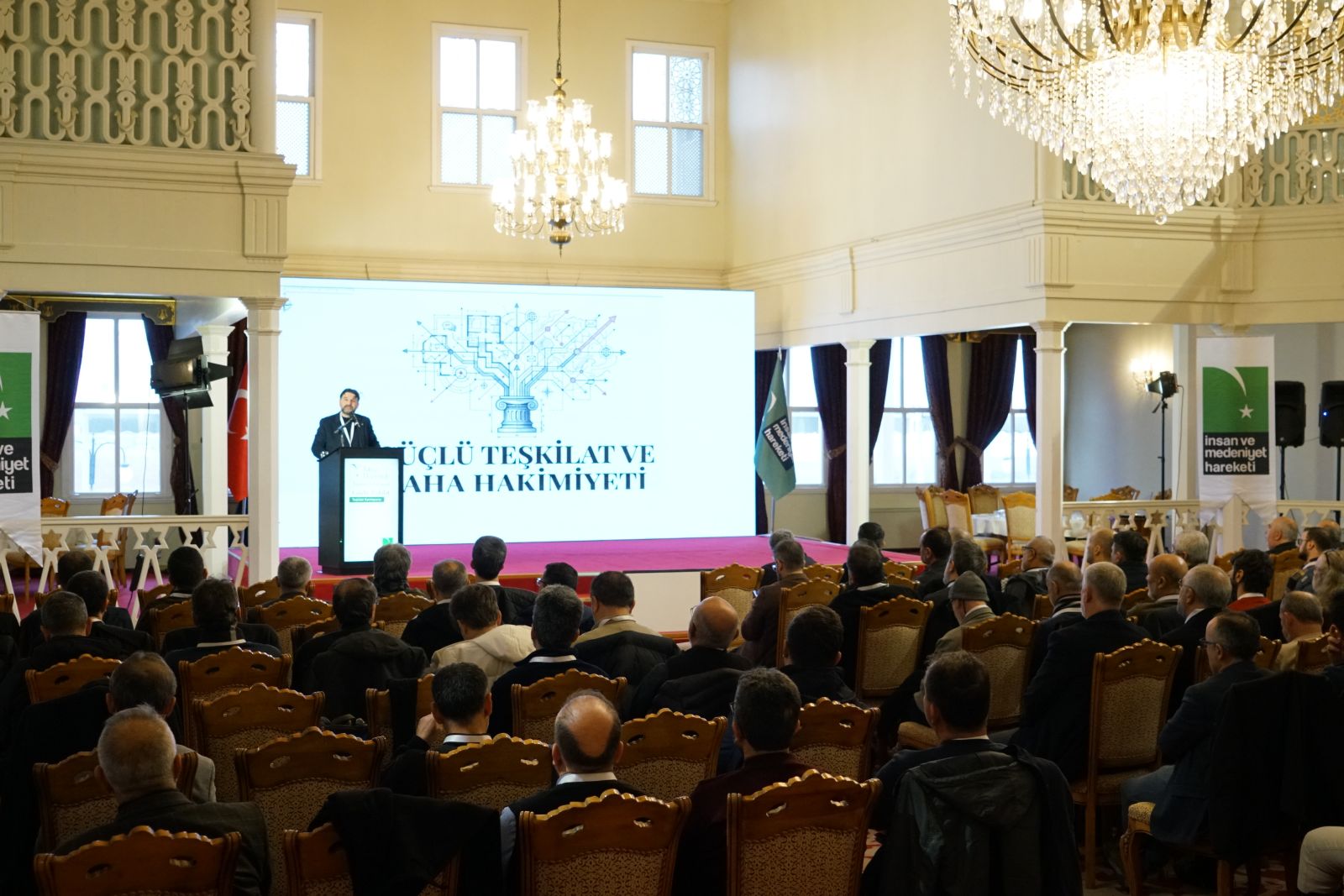 İMH Türkiye Teşkilat Buluşması’nın 2. oturumunda İMH Genel Başkanı Kemal Özden, Anadolu ve İstanbul ilçelerinden gelen yöneticilere hitap ederken "Takva Ekseninde Toplumsal Değişimde Hareketimiz" konulu sunumunu gerçekleştirdi.