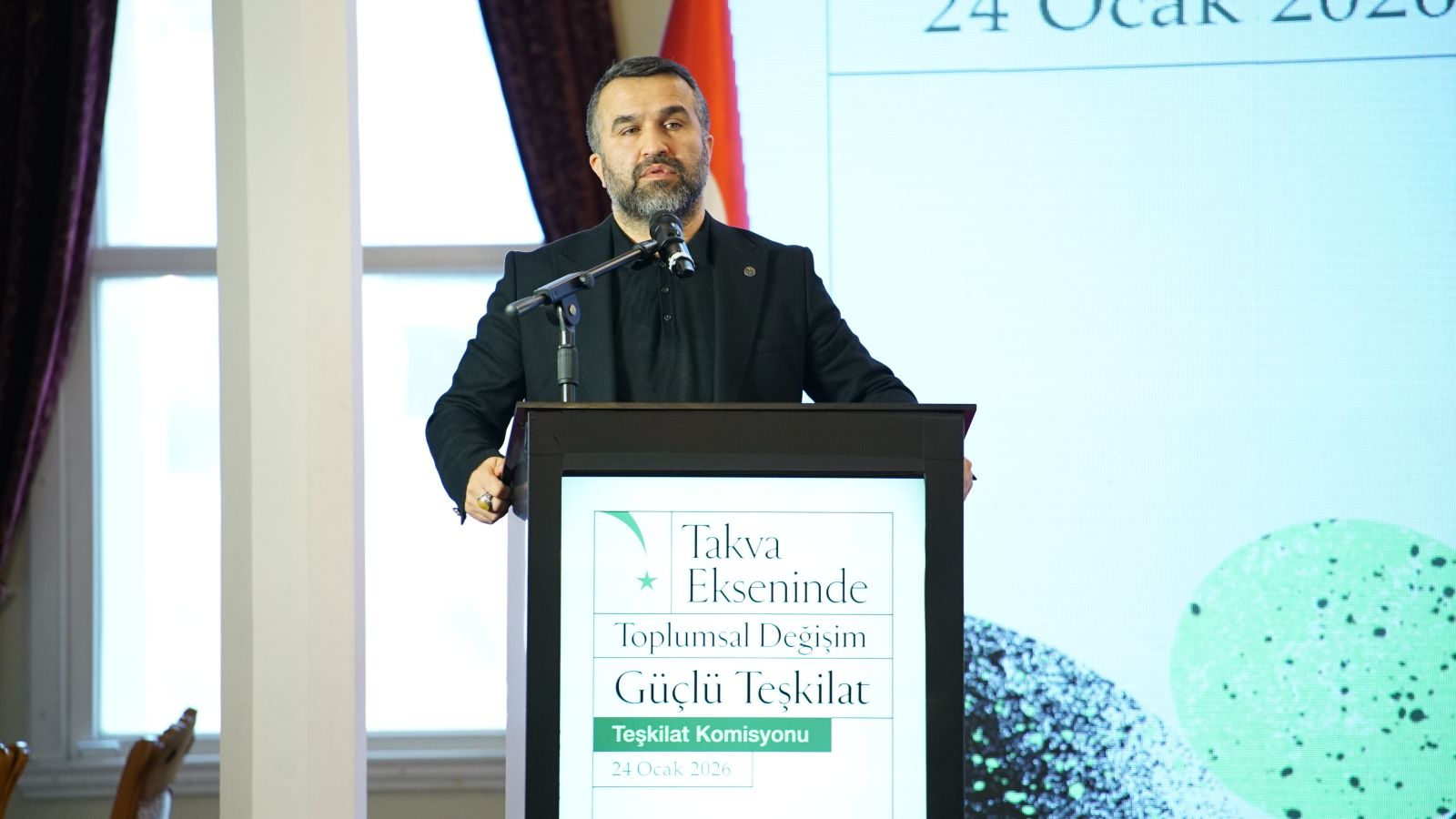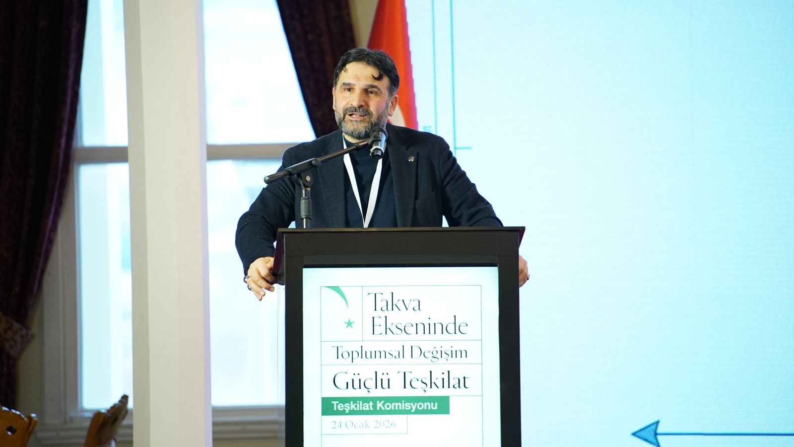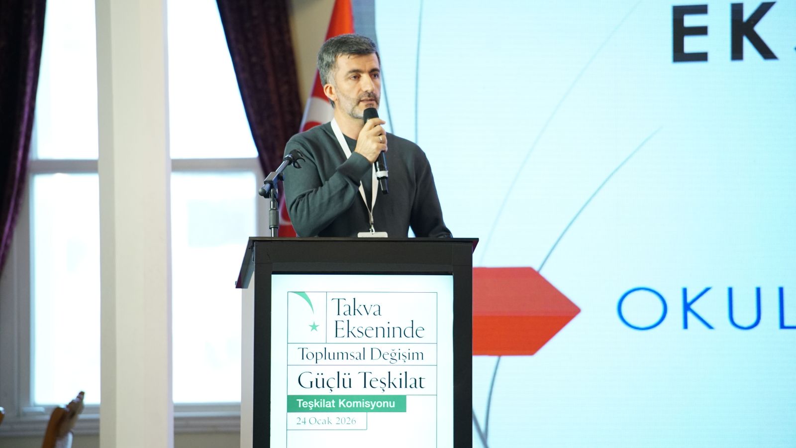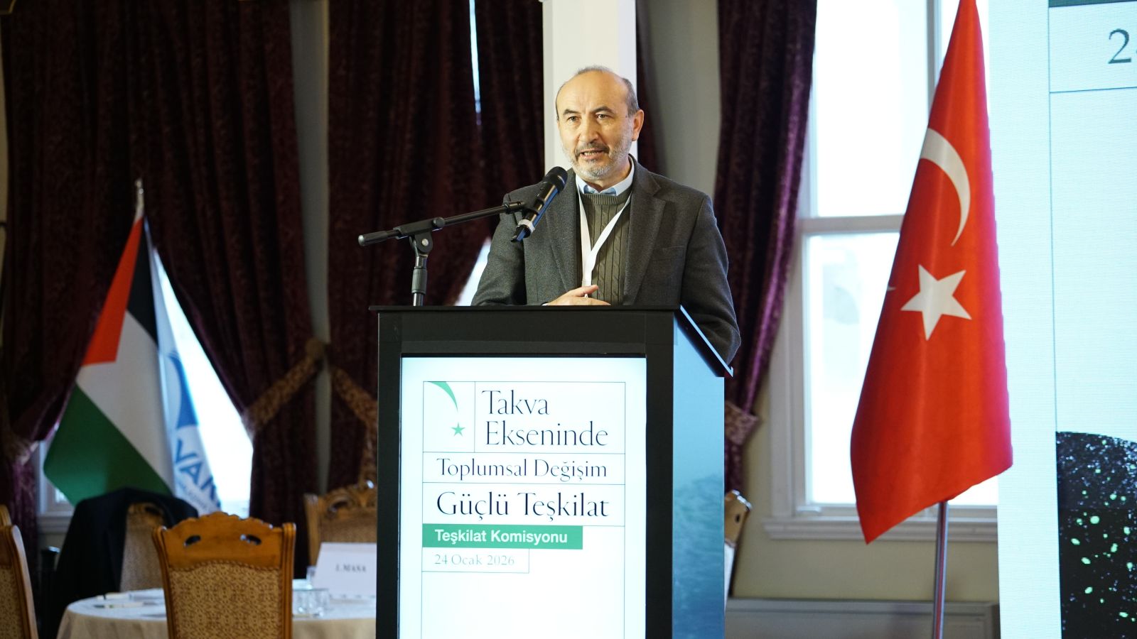 İMH Türkiye Teşkilat Buluşması’nın 2. oturumunda İMH Genel Başkanı Kemal Özden, Anadolu ve İstanbul ilçelerinden gelen yöneticilere hitap ederken "Takva Ekseninde Toplumsal Değişimde Hareketimiz" konulu sunumunu gerçekleştirdi.